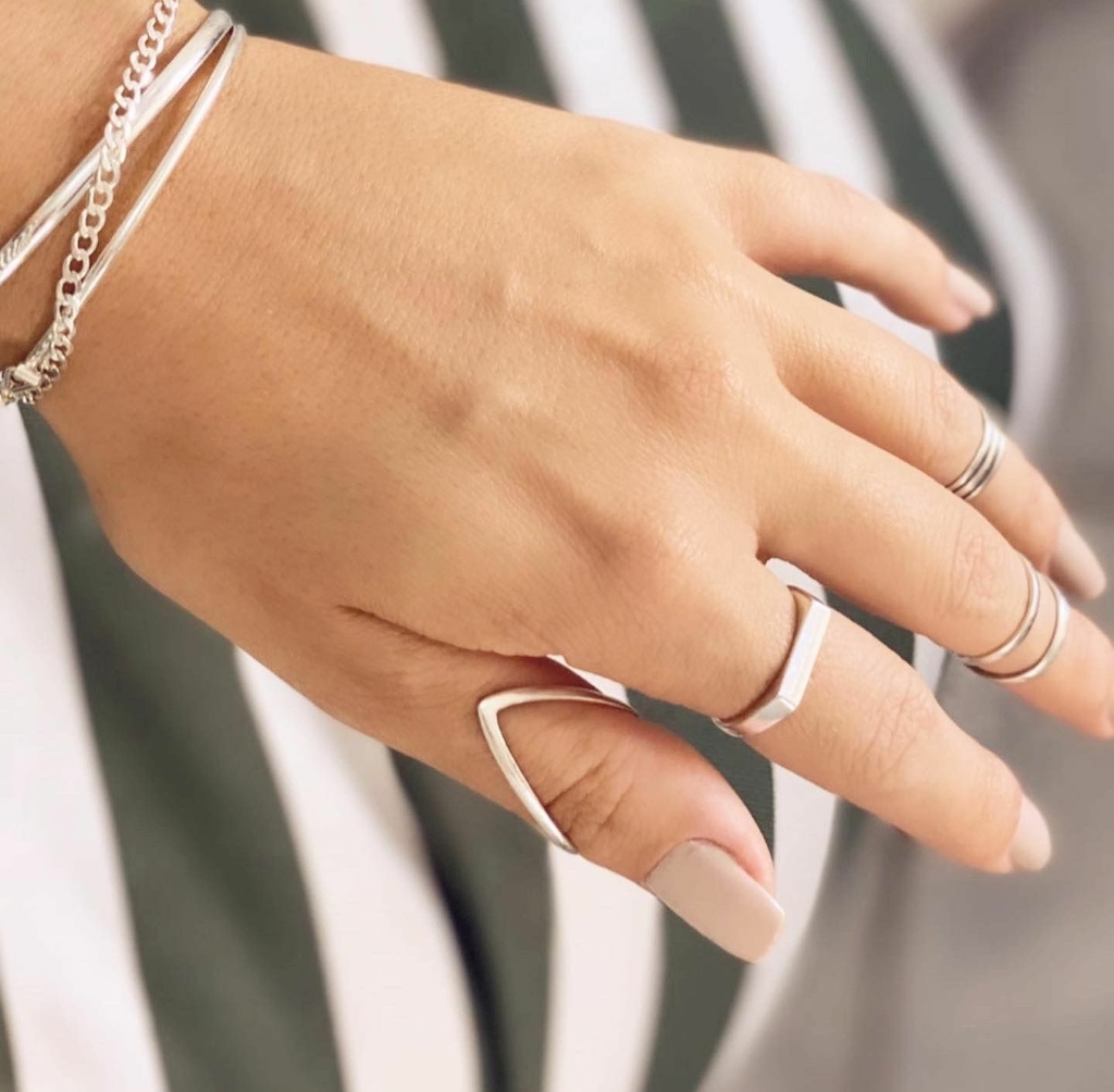 Impossível não se apaixonar por este anel polegar V! Também conhecido como anel boca de tubarão, é a joia de prata perfeita para quem é antenada nas tendências de acessórios femininos. Depois de saber disso, não deixe de ter o anel de polegar queridinho do momento!