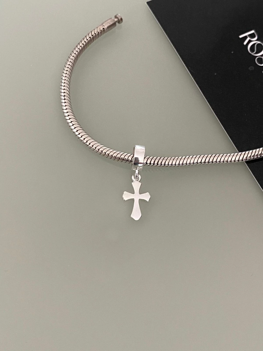 Dê um toque especial à sua pulseira com o Berloque Cruz Lisa, simples e cheio de significado. Um detalhe gracioso que carrega a fé e combina com qualquer look.