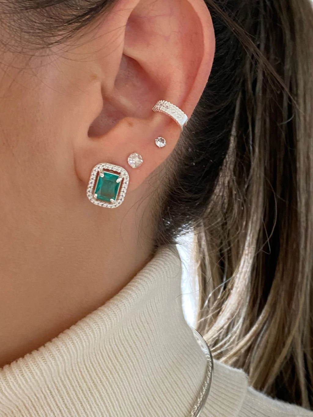 BRINCO RETANGULAR DE PEDRA TURMALINA COM CONTORNO DE ZIRCÔNIAS BRANCAS – PRATA 925