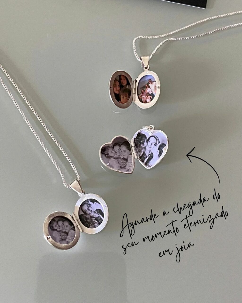 Transforme suas memórias em arte com este relicário único! Escolha seu modelo, envie suas fotos e aguarde a chegada de suas recordações eternizadas em joias.